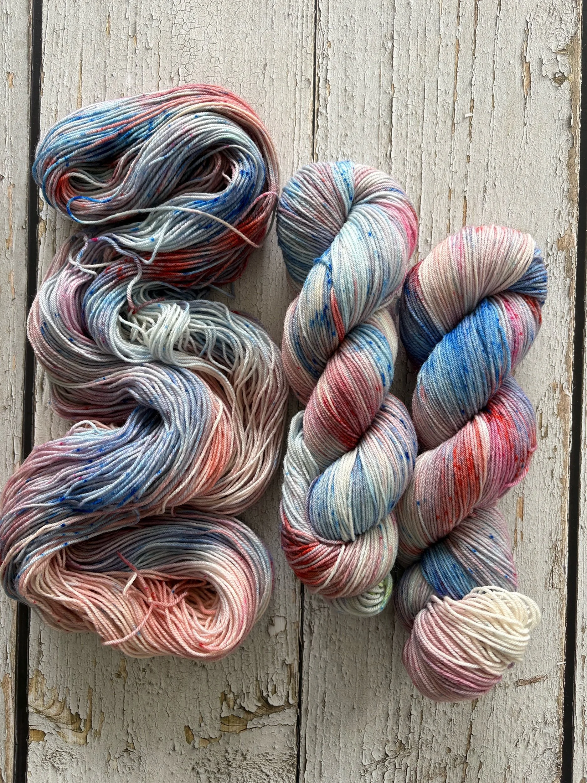 This listing is for one skein of variegated hand-dyed yarn