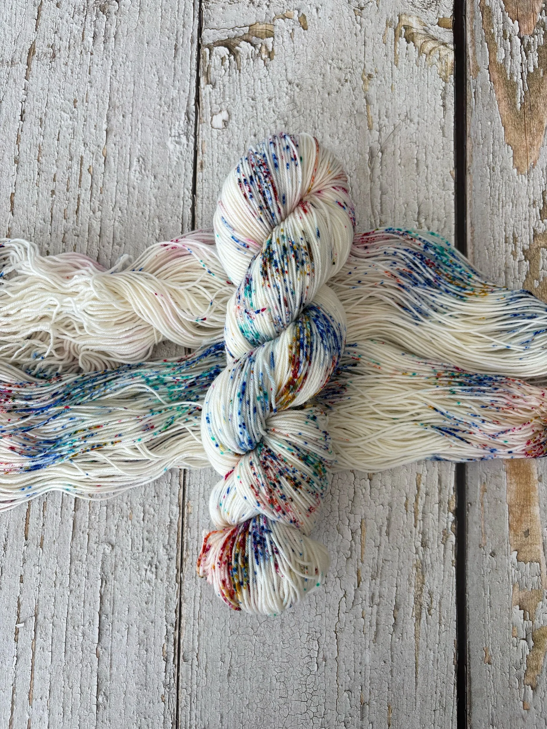This listing is for one skein of variegated hand-dyed yarn