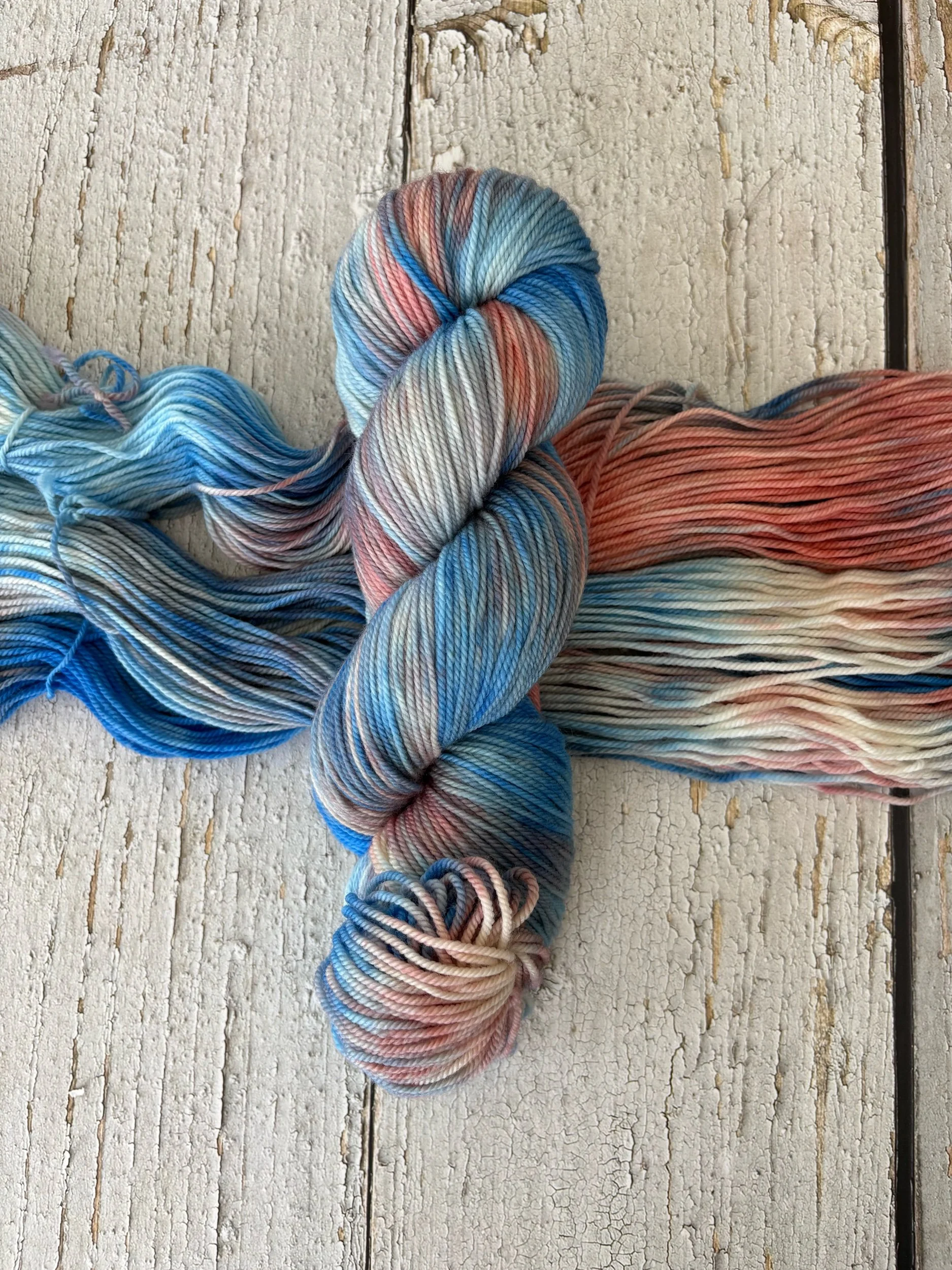 This listing is for one skein of variegated hand-dyed yarn