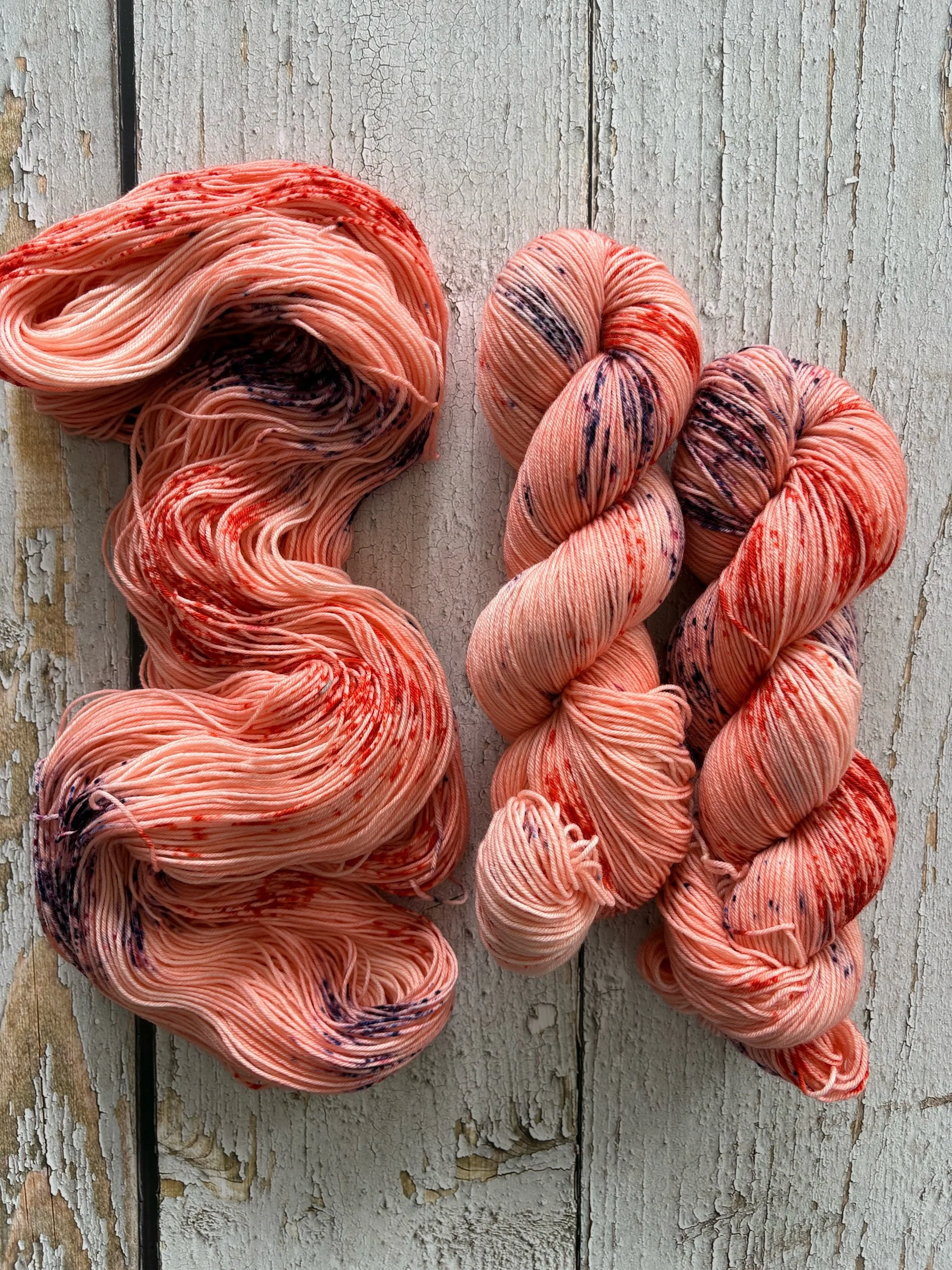 This yarn is hand dyed by yours truly using high-quality acid dyes. Each batch of yarn is created in small batches with each skein being truly unique. Please note I have done my best to capture the colors accurately in natural light, however some discrepancies between computer/mobile screens may occur. If you have any questions please send me a note!